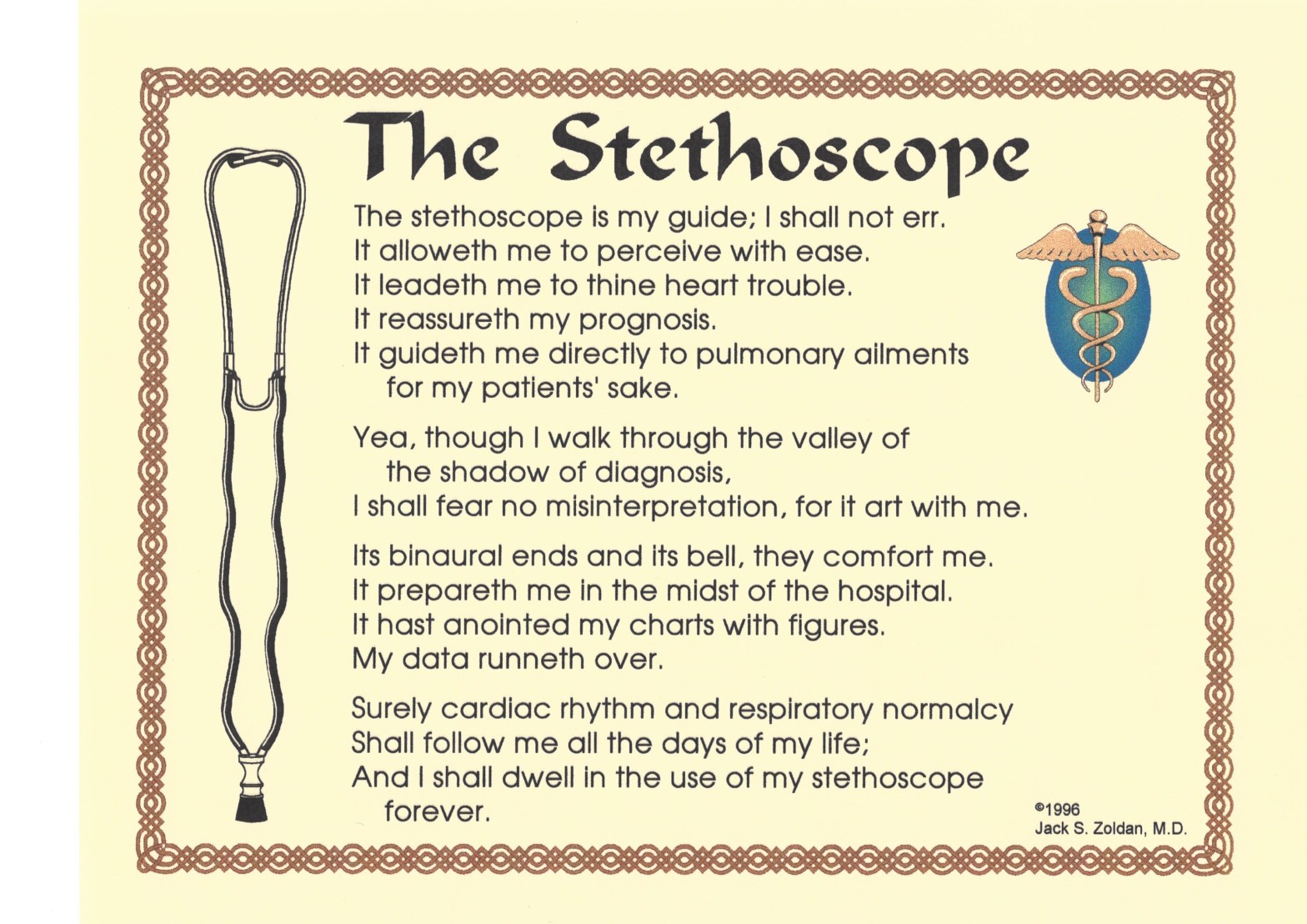The stethoscope is my guide; I shall not err.